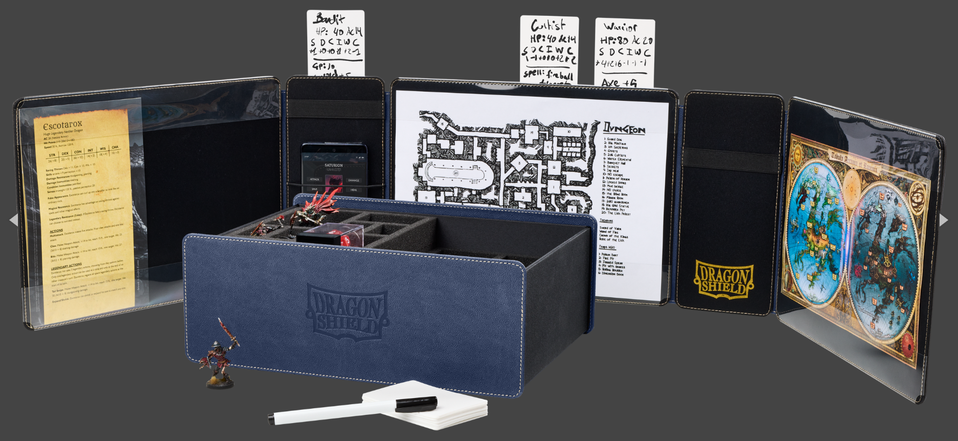 Stash and transport hordes of monsters while you conceal devious plans behind your GM screen! The Dragon Shield Game Master Companion is a two-in-one game master screen and storage/transport solution for game masters of tabletop RPGs.