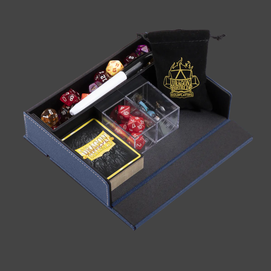Both the box and GM screen feature a tough Dragon Skin exterior, making the GM Companion durable and ideal for turbulent dungeon delving! Dragon Shield Roleplaying accessories are designed to enhance gameplay and immersion for Game Masters and Players of tabletop RPGs! Included in the box: 18 reusable cards. Dry erase marker4 foam trays with varying size slots. 2 foam trays with small slots