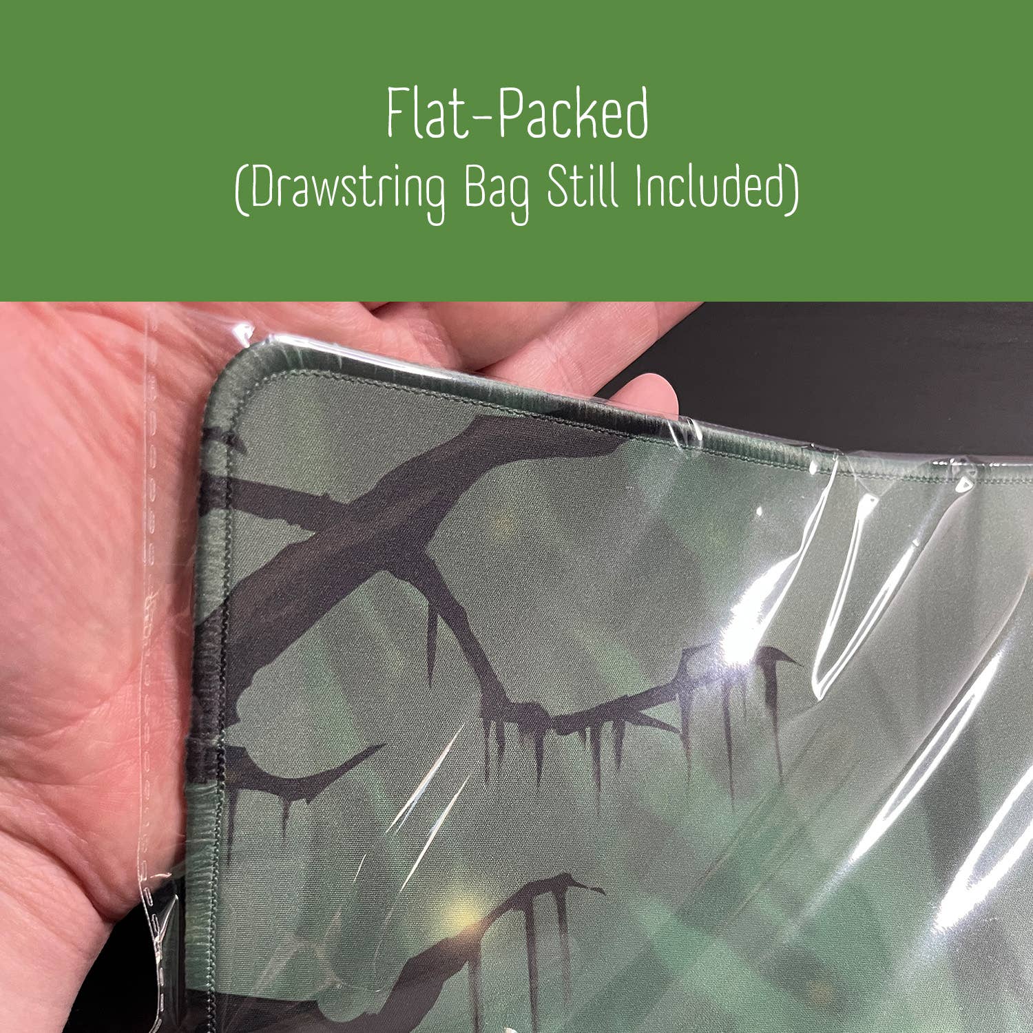 All of our playmats come shipped in a frosted drawstring bag, and are also available flat in a plastic sleeve (with the drawstring bag still included!) If you'd prefer the flat shipping, just send me a message on Faire!