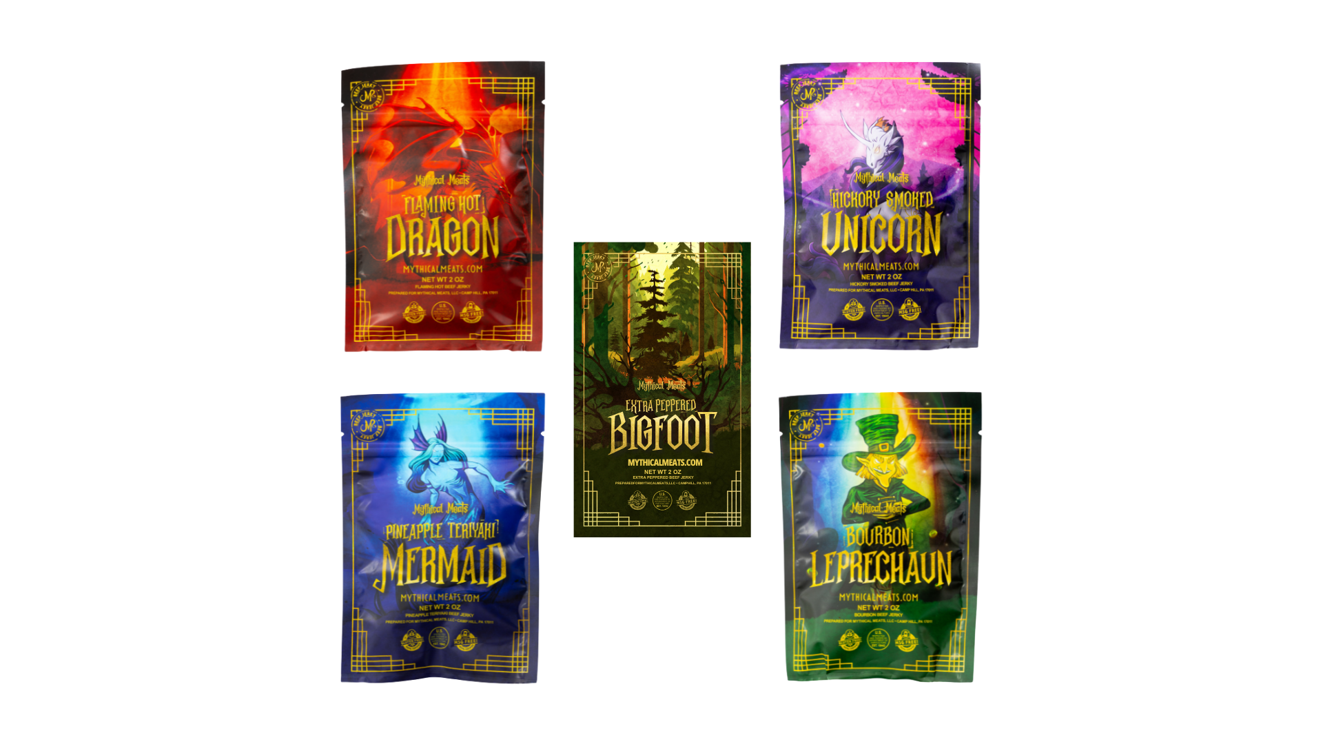 Choose from Bigfoot (Xtra Peppered), Dragon (Flaming Hot), Leprechaun (Bourbon), Mermaid (Pineapple Teriyaki), or Unicorn (Hickory Smoked)!