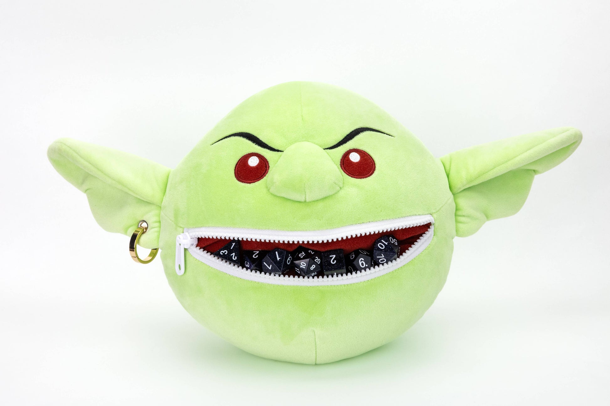 Introducing the "Dice Gobblin Goblin" the plush goblin who holds you dice for you in this high quality one-of-a-kind plush! The goblin's teeth are actually a zipper that reveals a secret compartment to hold your dice inside.