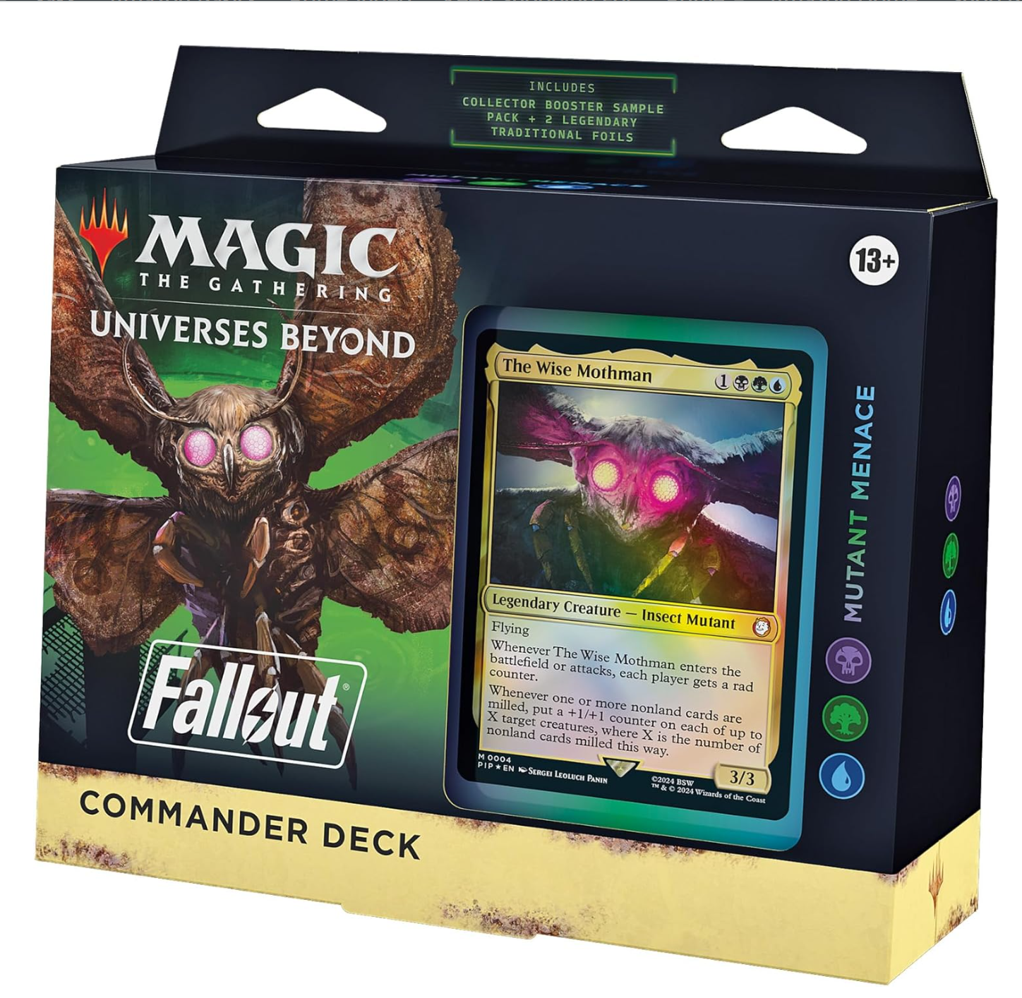 - COLLECT SPECIAL FALLOUT CARD TREATMENTS—Each deck comes with a Collector Booster Sample pack containing 2 special alt-frame cards, including 1 Rare or Mythic Rare card