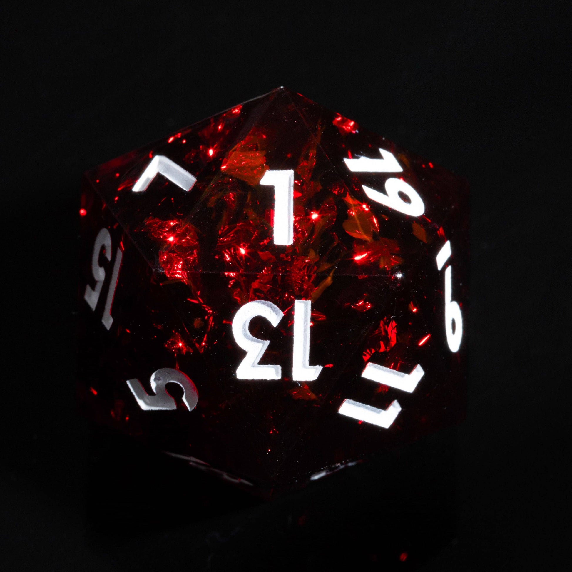 Every single dice set is hand-poured, polished, and painted. No part of this process is automated, so imperfections or differences in color can and will happen. This is due to the nature of how they're crafted and is totally normal. It is impossible to ensure that the dice are identical or look exactly as depicted in our photos. Each set of dice is one of a kind.